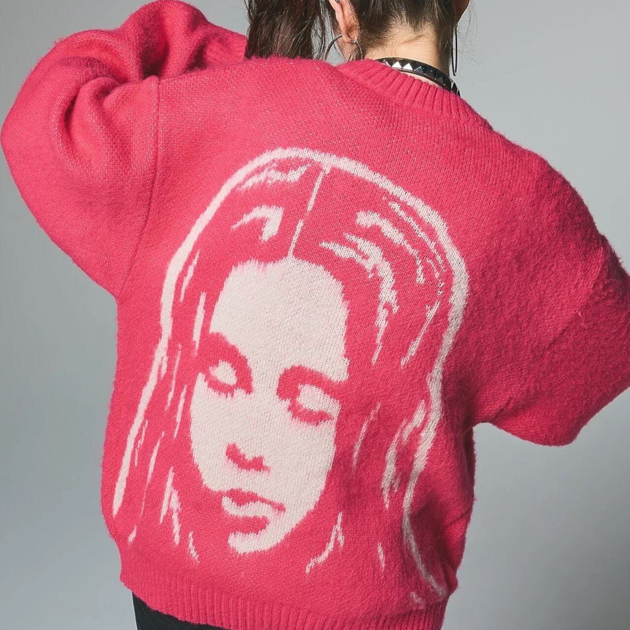 バックスタイルに大きくジャガードした、FACEグラフィックがポイント。